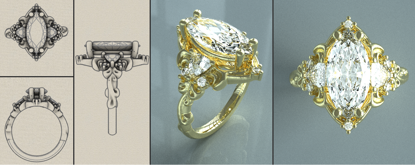Step 5. We create a CAD design of your dream ring, presenting your vision in a realistic, three-dimensional image. (See example below)
